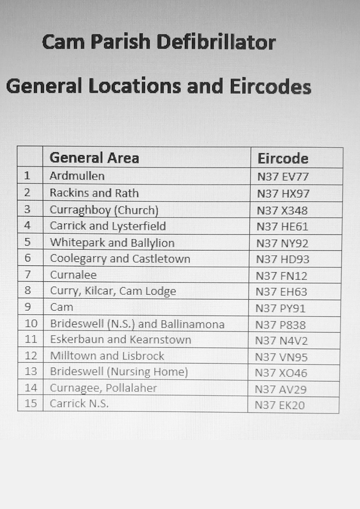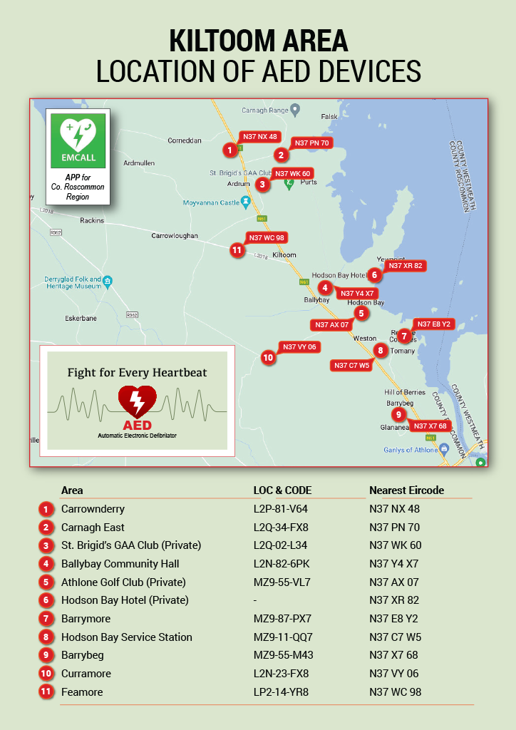 Location of AED Devices in Kiltoom Area